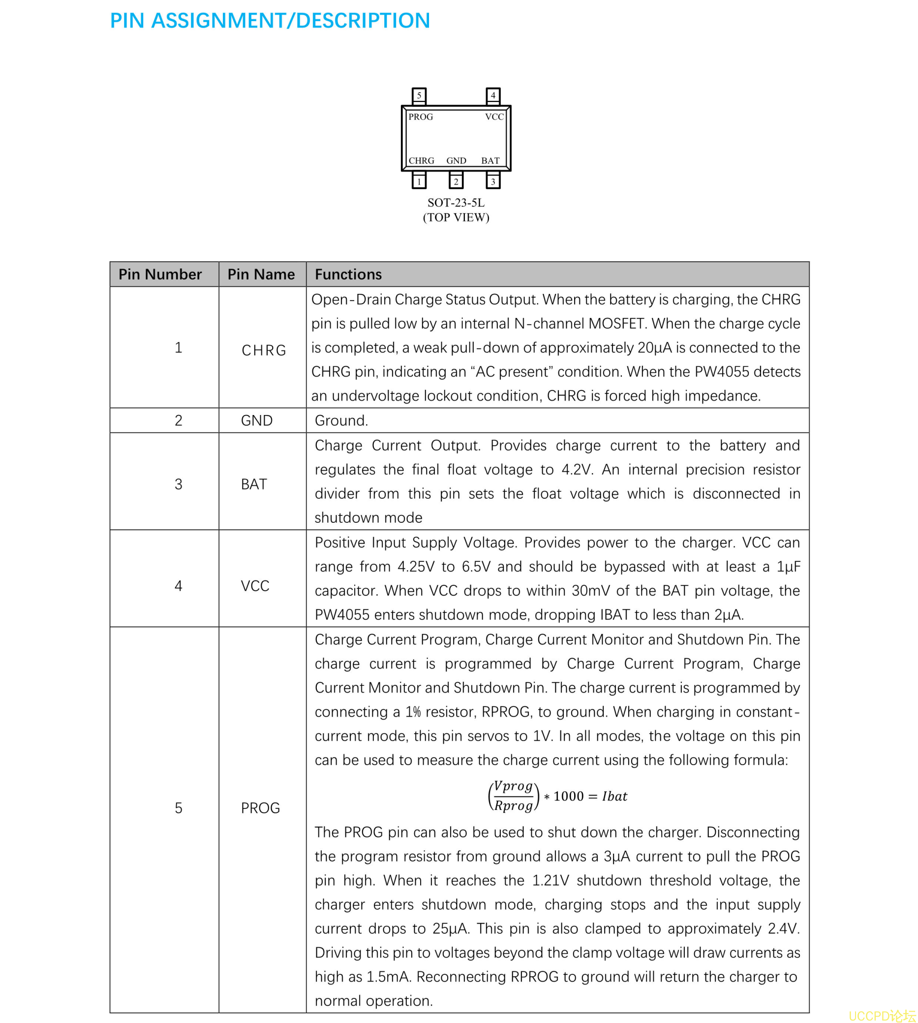 贴片五脚芯片规格书,锂电池充电管理IC,适用于3.7V锂电池充电电路。