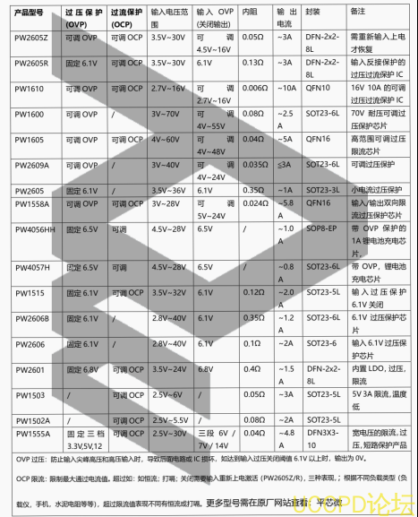 PW2606B:其特点是提供了 OVP阈值编程引脚(OVLO) ,允许在 6.1V范围内设定,但最大电流为1A。适合需要非标电压保护但电流需求不高的特定应用。