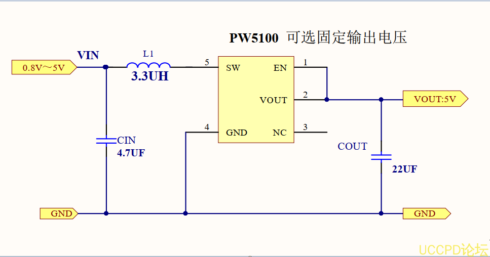 PW5100 仅需要三个外围元件,就可将低输入电压升压到所需的工作电压。系统的工作频