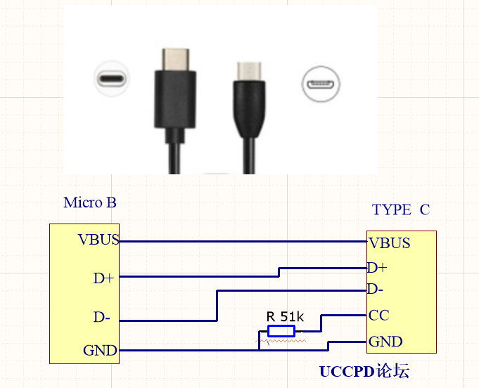 3 ,USB type C 与 USB Micro B做数据线的线路图:
