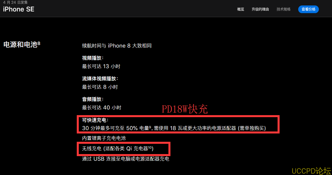 今天的主要点是关于IPHONE SE的PD快充,和无线充电功能这里的。