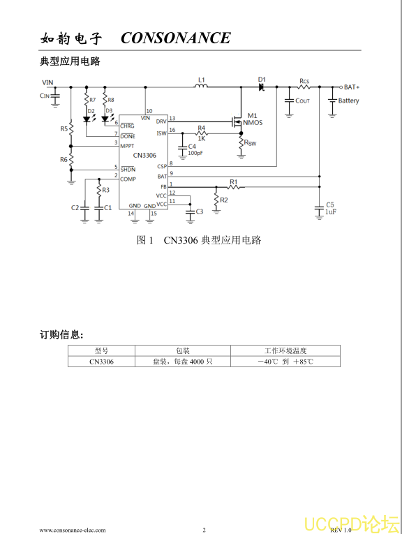 CN3306是电流模式固定频率PWM升压型多种电池充电管理集成电路。CN3306的输入电压范围4.5V至32V,外围元器件少,应用简单灵活,可用于锂电池,磷酸铁锂电池或钛酸锂电池的充电管理。