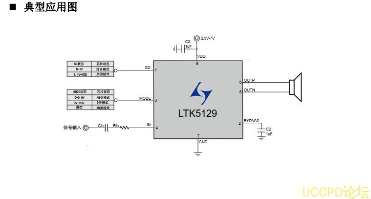 LTK5129 是一款 2Ω-10W 、4Ω-6.3W、单声道 F类音频功率放大器。LTK5129 采用高耐压工艺,耐压可达 7V, 同时对内部电路等方面进行优化,及大程度的提高输出功率。LTK5129 通过一个MODE 管脚可以方便地切换为 AB 类模式,完全消除 EMI 干扰。在 D 类放大器模式下可以提供高于90%的效率,新型的无滤波器结构可以省去传统D 类放大器的输低通滤波器,LTK5129 独有的DRC(Dynamic range control)技术,降低了大功率输出时,由于波形切顶带来的失真,相比同类产品,动态反应更加出色。LTK5129 采用ESOP-8 封装。