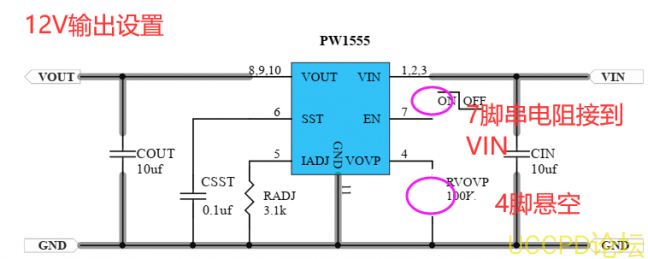 在12V输出电压模式时,输入电压不超过14V,超过会关闭输出。输出电压最高13V.