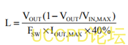 1) 选择电感以提供所需的纹波电流。建议选择纹波电流约为最大输出电流的 40%。计算了电感作为:
