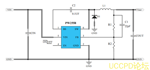 D1可选择如 SS36 CIN输入电压高时,推荐电解电容 47Uf-220u