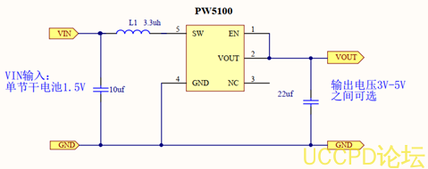 PW5100输出电压: 3V,3.3V,5V固定值。