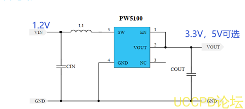 PW5100输出电压: 3V,3.3V,5V固定值,最大开关电路 1.5A