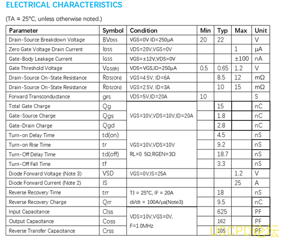PW2320 采用先进的沟道技术,提供良好的 RDS ( ON ),低栅极充电和低至 2.5V 的栅极电压操作。该设备适合用作电池保护或其他开关应用。