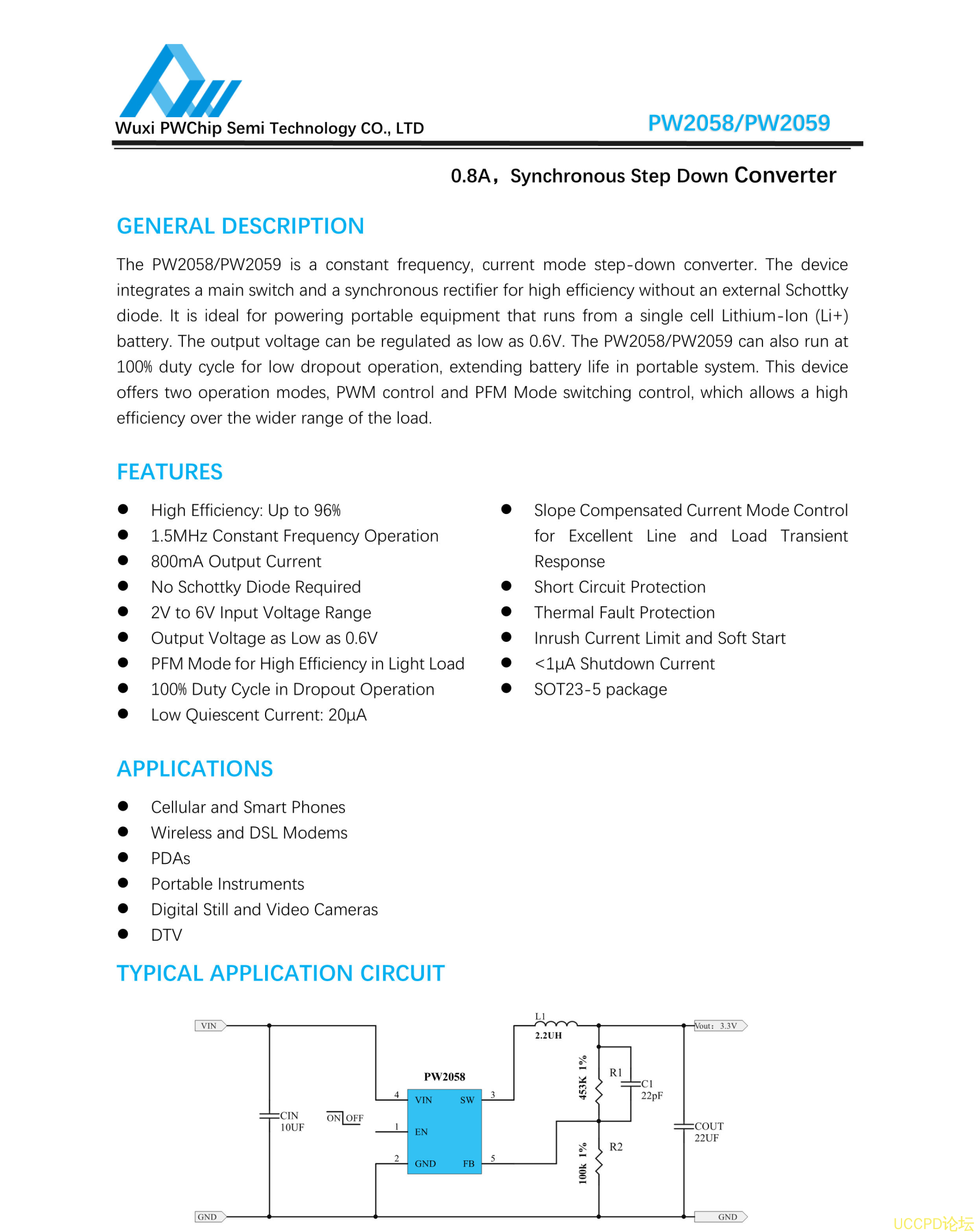 5V轉3.3V 0.8A降壓IC,代理PW2059
