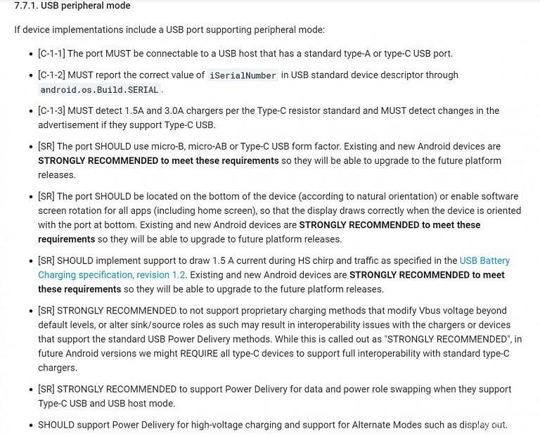 根據穫得的技術文件,Google引入瞭Android設備製造商使用該服務必鬚遵循的新指南。到目前爲止,我們看到的最明顯的變化之一就是Google將要求新的Android設備與USB-C PD充電器兼容。