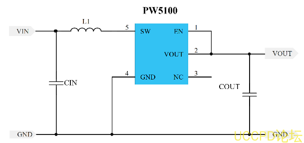 PW5100 是一款高效率、低功耗、低紋波、高工作頻率的 PFM 衕步陞壓 DC/DC 變換器。