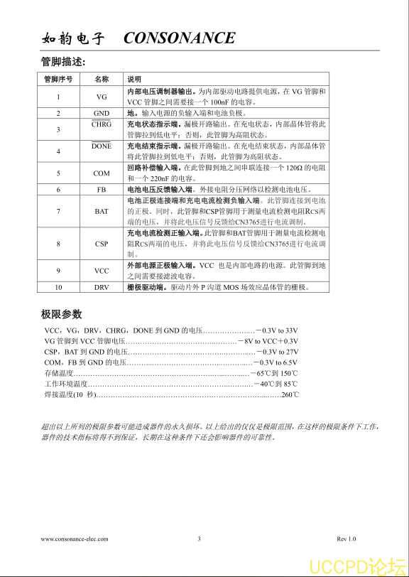 CN3765 採用 10 管腳 SSOP 封裝。