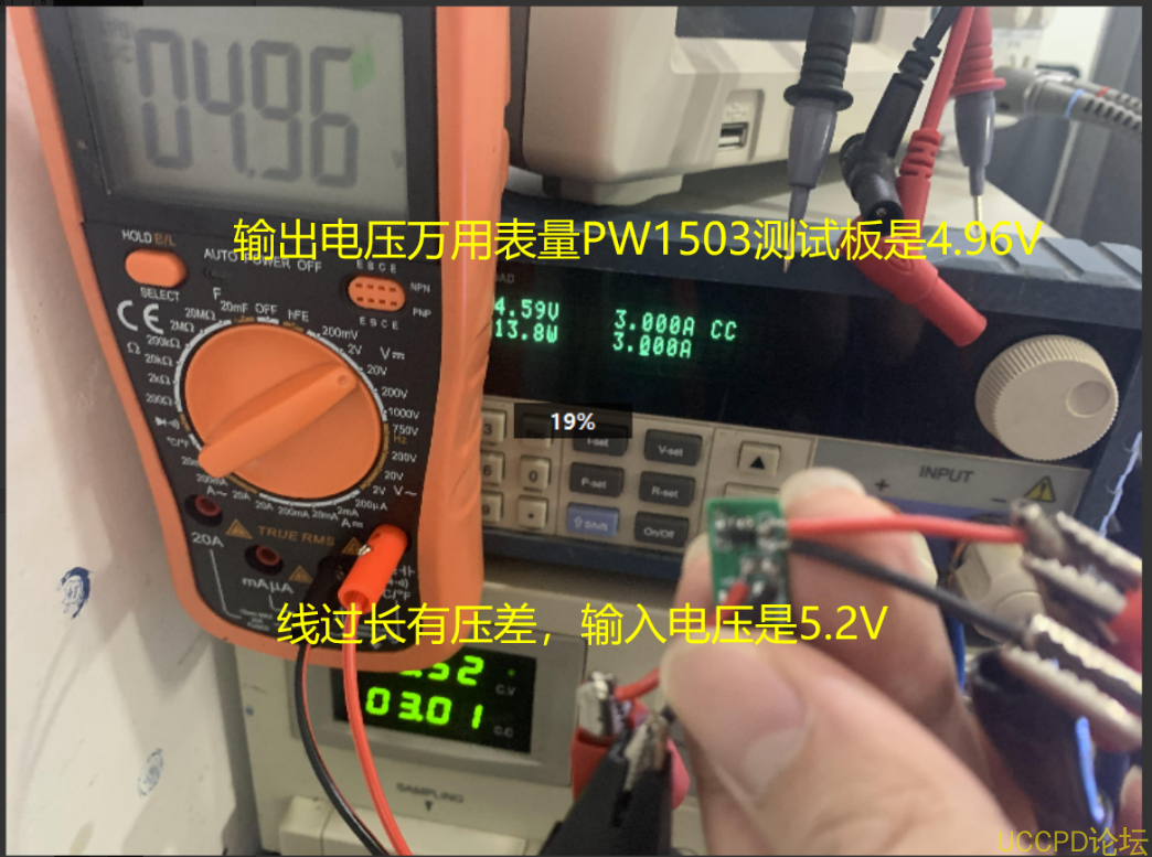 PW1503,是比 PW1502更大電流可達到 3A規格的 USB限流芯片。輸入電壓範圍在 2.5V-5.5V之間,適用於 5V1A,5V1.5A,5V2A,5V2.4A,5V3A的限流 USB輸齣應用中。 PW1503的測試:輸入電壓 5.2V,輸齣電壓 4.96V,負載 3A,工作溫度大概在 55度左右。
