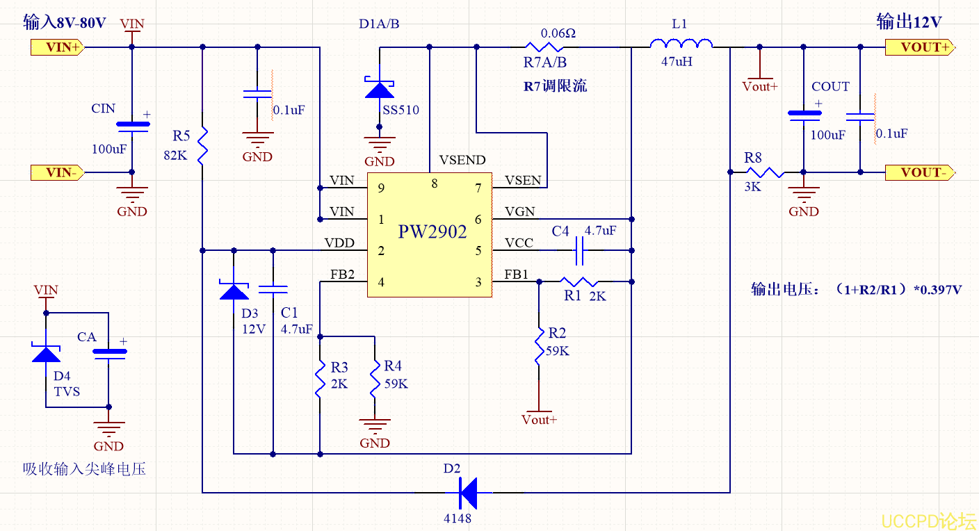 1, PW2906,輸入 12V-90V,輸齣 5V,12V,15V等可調輸齣。輸齣電流 0.6A;