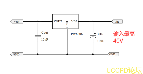 PW6206可以選擇輸入電容改大容值的電解電容,如 100uF,或者輸入串聯電阻如 1206封裝的 2歐姆電阻來吸收尖峰電壓。