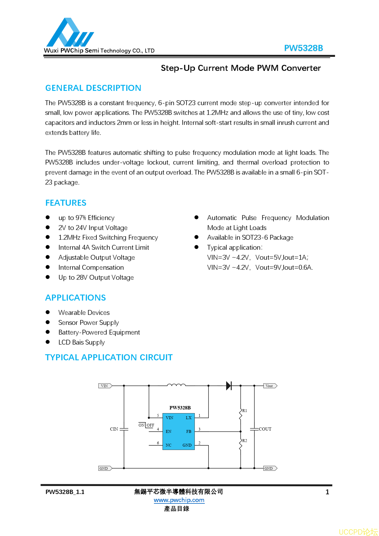 代理PW5328B高效率陞壓IC,PW5328芯片
