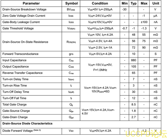 VDS=-30V, ID=-4.2A