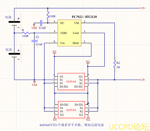 2,单节的锂电池保护电路: