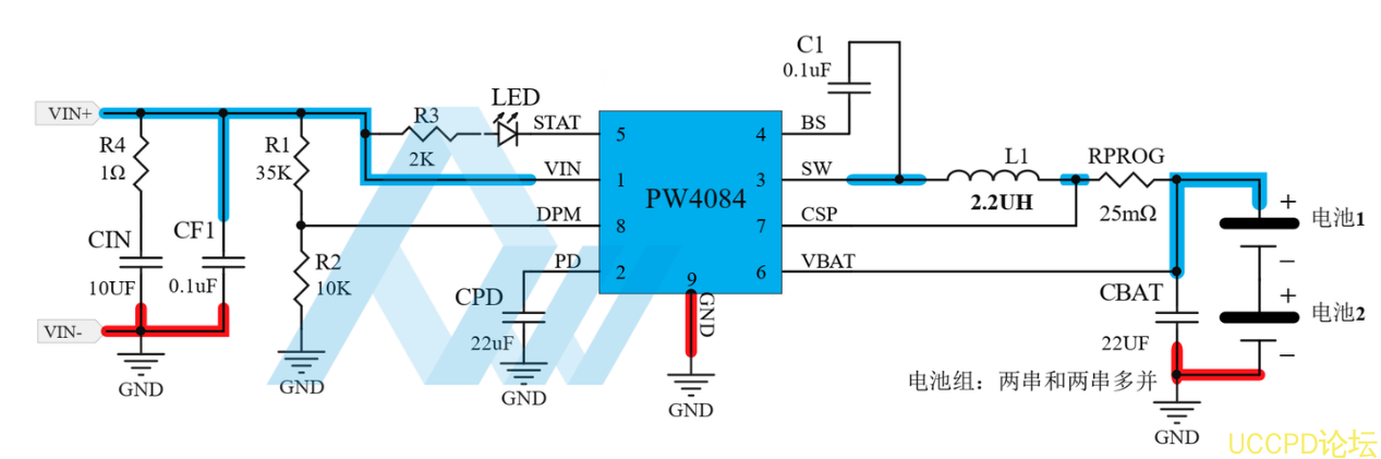·PW4000管理芯片 :集成同步升降压控制器,支持 1-4节电池,最大3A充电