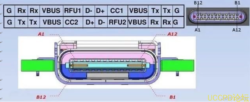 从充电这块的技术层面来讲:我们可以去掉 A2,A3,A8,A10,A11,B2,B3,BB8,B10,B11这 10片接触片,只需保留充电功能用到的 CC1, CC2, D+, D-, GND(负极), Vbus(正极)即可。