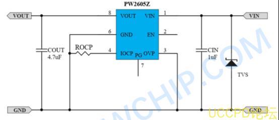 PW2605Z 通过持续监测VIN引脚电压、流经内部MOSFET的电流以及芯片结温来动态管理电源路径。