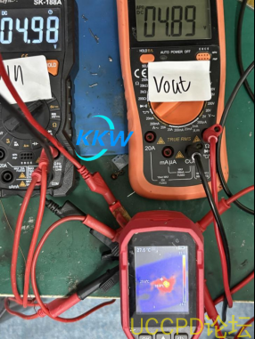 输入 4.98V,输出4.89V负载2A,温度33.6度,正常。