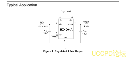 parts count (one flying capacitor and two small bypass capacitors at VIN and VOUT) make the HX4004A ideally suited for small,battery-powered applications.