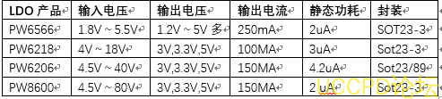 如上图的输入电压范围,我们可以选择 PW6206和 PW8600两款。