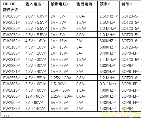 如图,根据表格,可以选择的芯片有不少了,建议选择输入电压范围达到