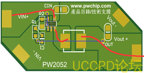 4 PW2052 芯片在工作时,带载过大时芯片本身也是发热源之一, IC 底部可以多打孔等其他散热处理。