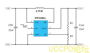 PW5200A工作频率为 1.4MHZ。轻载时自动 PWM/PFM模式切换,提高效率。