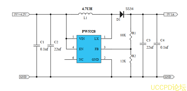 2, C3,C4是 PW5328B输出端的滤波电容部分, C3不加会照常芯片工作异常或损坏;