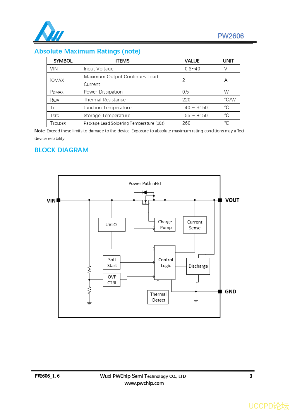 PW2606是一种前端过电压和过电流保护装置。它实现了广泛的输入电压范围从2.5V到40V。过电压阈值可在外部编程或设置为内部默认设置。集成功率路径nFET开关的超低电阻确保了更好的性能电池充电系统应用的性能。它可以提供高达2A的电流,以满足电池供电系统。它集成了过热保护停机和自动恢复功能具有滞后的电路,以防止过电流事件。这个设备有超小型的SOT23-6L封装,适合小面积PCB应用。