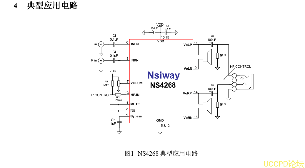 NS4268 提供 SOP16 封裝,額定的工作溫度範圍爲-40℃至 85℃。