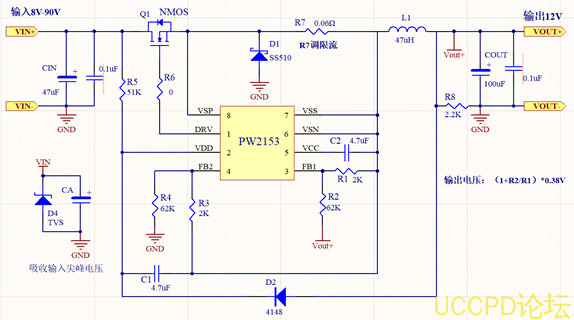 從上麵錶格數據來看,可找齣幾箇符閤的芯片,由於 PW2558是輸入 55V最大,不符閤輸入到 50V的應用,需要留有餘量。故, PW2815,PW2906,PW2902,PW2153可滿足要求。