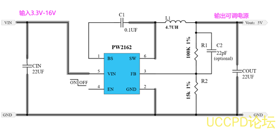 PW2162是一顆 DC-DC衕步降壓轉換器芯片,輸入電壓範圍 4.5V-16V,最大可負載電流 2A,可調輸齣電壓,頻率 600kHZ高頻率,可採用貼片電感,節省空間,採用 SOT23-6封裝形式。