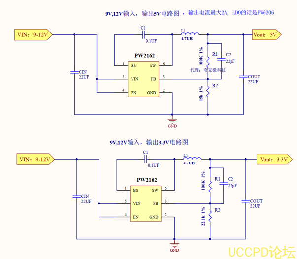 9V轉 3.3V,12V轉 3.3V給 MCU供電,要求輸齣電壓穩定,低紋波等, 9V轉 3.3V,12V轉 3.3V降壓到 1A,2A,3A的大電流降壓電路芯片, DC-DC降壓芯片雖然在靜態功耗上比 LDO大很多倍,但是 LDO線性穩壓的特點,所以 LDO不適閤 100MA以上應用,建議用 DC-DC降壓方案。